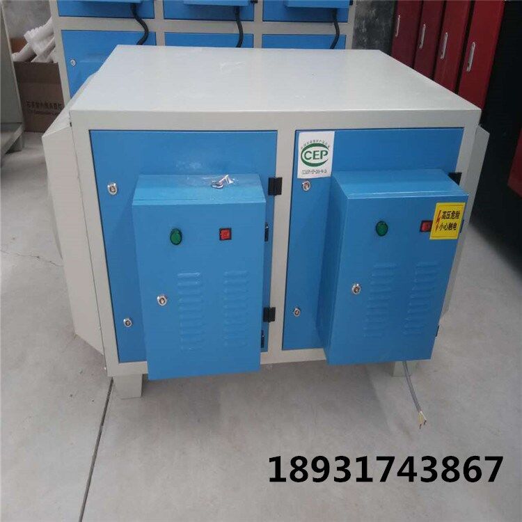 首先廢氣經(jīng)均流板過濾棉進(jìn)入設(shè)備時,由設(shè)備高壓穩(wěn)定高頻放電,瞬間產(chǎn)生1.5萬伏特至2萬伏特高壓,擊穿廢氣。此階段中,長鏈、多鏈廢氣分子由于鍵能較弱,約束力較小。很容易被擊穿化學(xué)鍵破裂,從而變成小分子化合物,此為第一階段凈化。其次,隨廢氣進(jìn)入設(shè)備的水分子、氧分子被高壓擊穿斷裂,生成強(qiáng)氧化基團(tuán)羥基、臭氧分子等。這些強(qiáng)氧化基團(tuán)與廢氣分子充分接觸氧化,加快反應(yīng)進(jìn)程。整個反應(yīng)干凈徹底,能量利用率高,凈化效率非常高。
