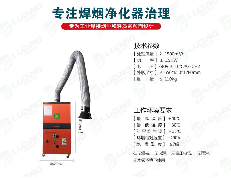 焊接煙塵又稱為電焊煙霧,是指焊接操作中經常會產生一些有毒的物質。如:乙醛、松香酸、異氰酸鹽、氮氧化物、硫化物、碳氫化合物等。焊接煙塵是一種十分復雜的物質,lans已在煙塵中發(fā)現的元素多達20種以上,其中含量多的是Fe、Ca、Na等,其次是Si、Al、MnTi、Cu等。焊接煙塵中的主要有害物質為Fe2O3、SiO2Mao、HF等,其中含量多的為Fe2O3,一般占煙塵總量的35.56 ,其次是SiO2,其含量占1020 ,Mao520 左右。